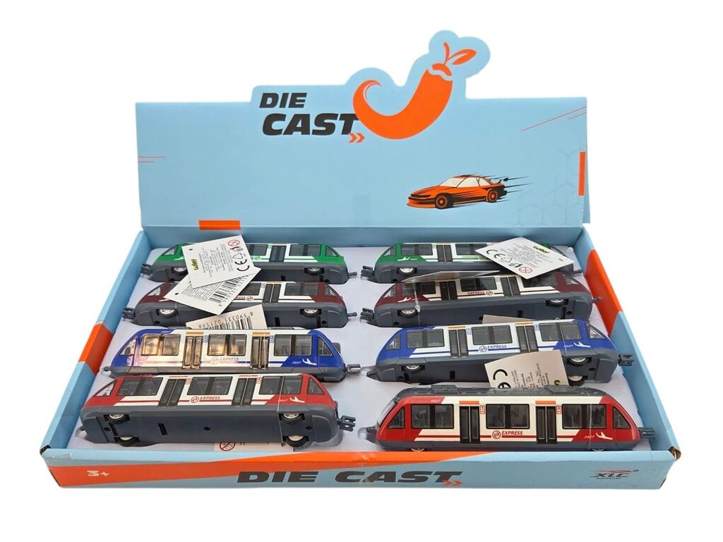 Vlak na spätné natiahnutieFarebné vláčiky na spätné natiahnutie, ktoré potešia každého malého milovníka železníc. 4 farby: zelená, modrá, červená, hnedáVeľkosť: 16 cmMateriál : plast / kovCena je uvedená za 1 kusV prípade celého balenia 8 kusov