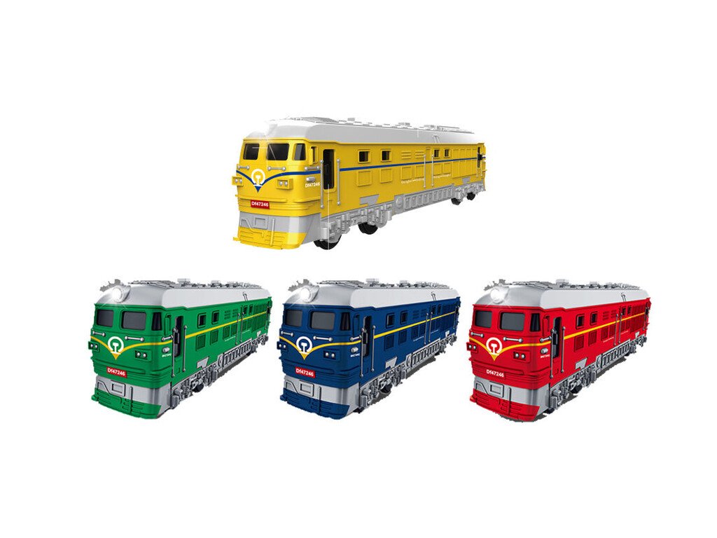 Vlak na zotrvačník 23cmFarebné vláčiky na zotrvačník, ktoré potešia každého malého milovníka železníc. 4 farby: zelená, modrá, červená, žltáVeľkosť: 23 cmMateriál : plast Cena je uvedená za 1 kusV prípade celého balenia 8 kusov