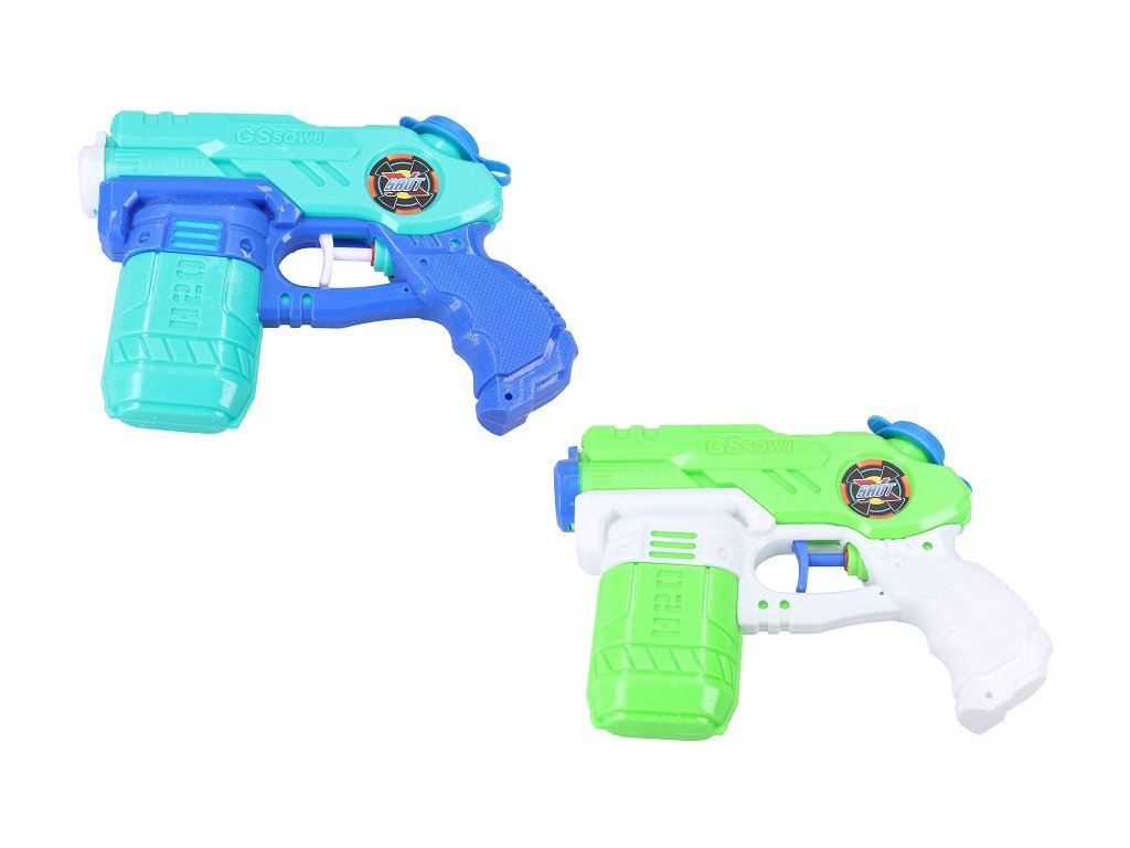 Vodná pištoľ 18cmVo vode alebo na súši, všade číha nebezpečenstvo. Buď pripravený a maj po ruke svoju vodnú pištoľ. Len tak môžeš nepriateľa prekvapiť ako prvý. Napumpuj vodu a striekaj. Vodná pištoľ ti zaistí veľa zábavy a nielen v lete. 2 farby: modrá, tyrkysováVeľkosť:18 cmV prípade balenia obsah: 14 kusovCena je uvedená za 1 kus