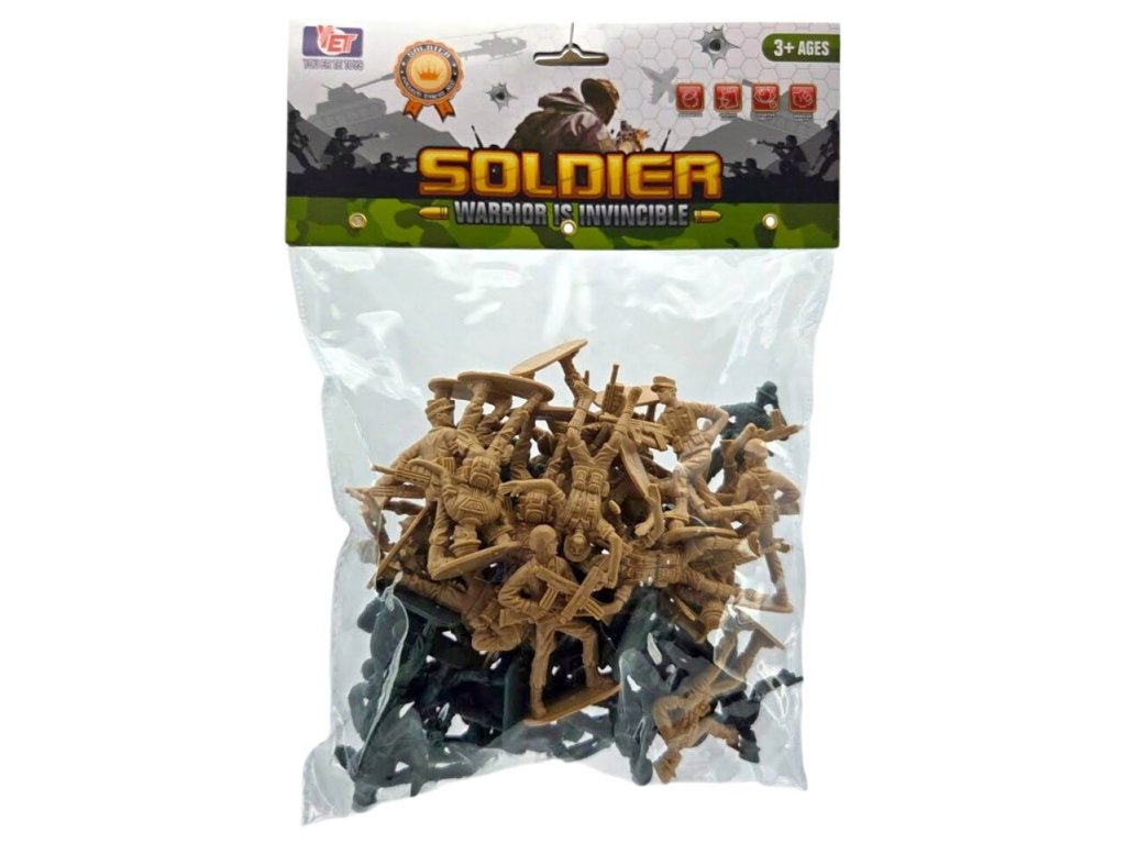 Vojaci 7cm Sada figúriek zelených a hnedých vojakov. Veľkosť vojačika 7 cm. Balenie: 48 ksVeľkosť vojaka: 7 cmVhodné od 3+