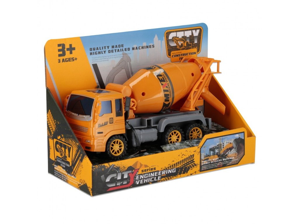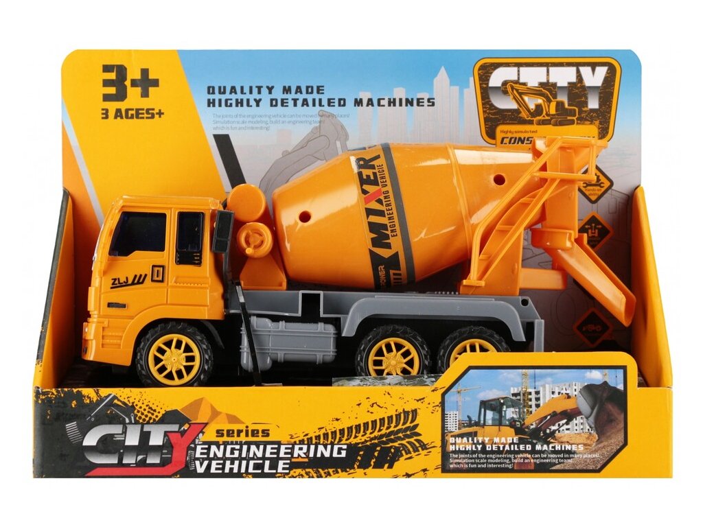 Vozidlo na miešanie betónu 21 cmRozvíja predstavivosť, dieťa má možnosť naučiť sa, ako vyzerá práca na stavenisku, nákladné auto má otáčajúcu sa miešačku betónu a pohyblivé časti, má tiež funkciu pull&back, takže keď vozidlo tlačíte dopredu, pokračuje v jazde samo. Stavebný stroj je nepostrádateľný na každom stavenisku. Miešačka betónu je dokonalá pomôcka pre každého malého milovníka stavebných vozidiel, s miešačkou betónu sa aj tie najťažšie úlohy ukážu ako môžu byť ľahké. Miešačka na betónHračka vyrobená z plastuRozmery výrobku (D x V x H) [cm]: 21 x 11 x 7 cmhmotnosť výrobku bez obalu [kg] 0,14 kgHmotnosť výrobku s obalom [kg] 0,23 kgNie je potrebné napájanie z batérieHračka je určená pre deti vo veku: 3+Balené v otvorenej kartónovej krabici