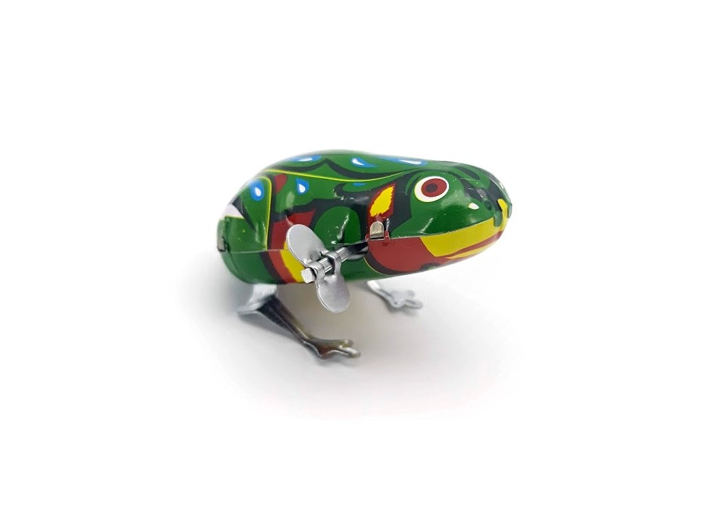 Žaba naťahovaciaRetro hračka hopsajúca žabka na kľúčik. Pohyb plechovej žabky zaisťuje perový strojček s naťahovacím kľúčikom. Klasická kovová hračkaPohon na kľúčikVeľkosť: 7 x 5,5 cmOdporúčaný vek: 5+