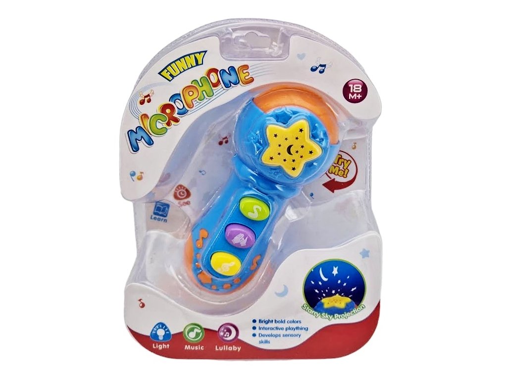Zábavný mikrofón pre najmenších s efektmiDetský mikrofón s rôznymi funkciami, zaručí dieťaťu dostatok zábavy a učenia sa. Žiarivý vzhľad, zaujímavý charakter, prvotriedne výrobné materiály. Prostredníctvom hry tieto hračky rozvíjajú jemnú motoriku a predstavivosť vášho dieťaťa. Rôzne zvuky a svetelné efektyProjektor nočnej oblohyNapájanie 2 x AAA batérie (súčasťou balenia)Veľkosť 14 cmOdporúčaný vek 18m+