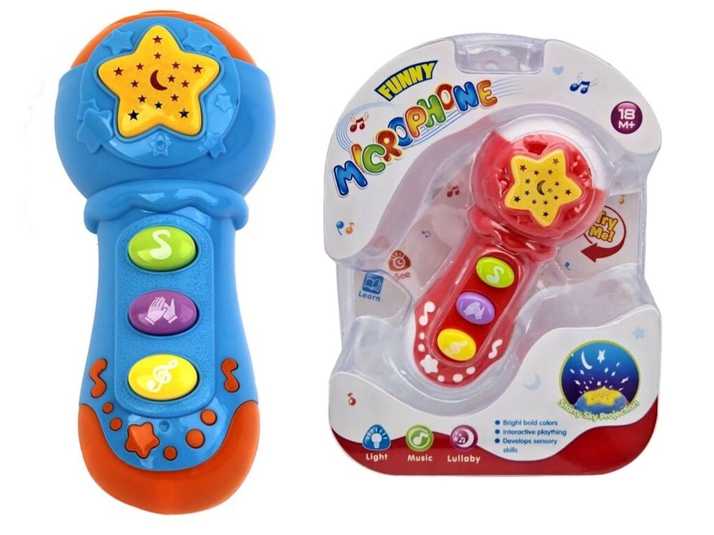 Zábavný mikrofón pre najmenších s efektmiDetský mikrofón s rôznymi funkciami, zaručí dieťaťu dostatok zábavy a učenia sa. Žiarivý vzhľad, zaujímavý charakter, prvotriedne výrobné materiály. Prostredníctvom hry tieto hračky rozvíjajú jemnú motoriku a predstavivosť vášho dieťaťa. Rôzne zvuky a svetelné efektyProjektor nočnej oblohyNapájanie 2 x AAA batérie (súčasťou balenia)Veľkosť 14 cmOdporúčaný vek 18m+