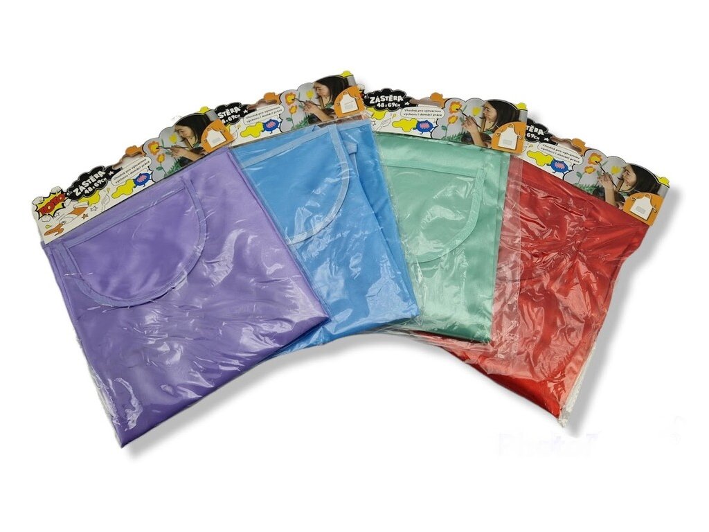 Zástera 48 x 64 cmDetskú zásterku pre kreatívne účely deti využijú v škole na výtvarnej výchove a pracovných činnostiach alebo na keramickom a modelárskom krúžku. Detskú zásteru ocenia aj mamičky doma. zaväzovanie za krkom a v pásena prednej časti má kapsičkuviac farieb