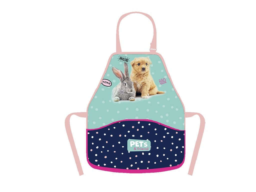 Zástera Zvieratká 53x40cmDetskú zásterku pre kreatívne účely deti využijú v škole napr. na výtvarnej výchove a pracovných činnostiach alebo na keramickom a modelárskom krúžku. Detskú zásteru ocenia aj mamičky doma. zaväzovanie za krkom a v pásena prednej časti má kapsičkuMateriál 100% polyester