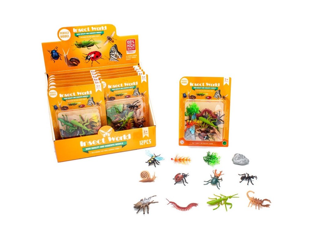 Zvieratká hmyz figúrky setSúprava plastových zvieratiek-hmyzu. Balené v sáčku. Rozmery figúrok 6,5x4,5x2 cmObsah balenia .10 ks zvieratiek, 1x krík, 1 x kameňCena je uvedená za 1 balenie, posielame podľa skladovej dostupnosti