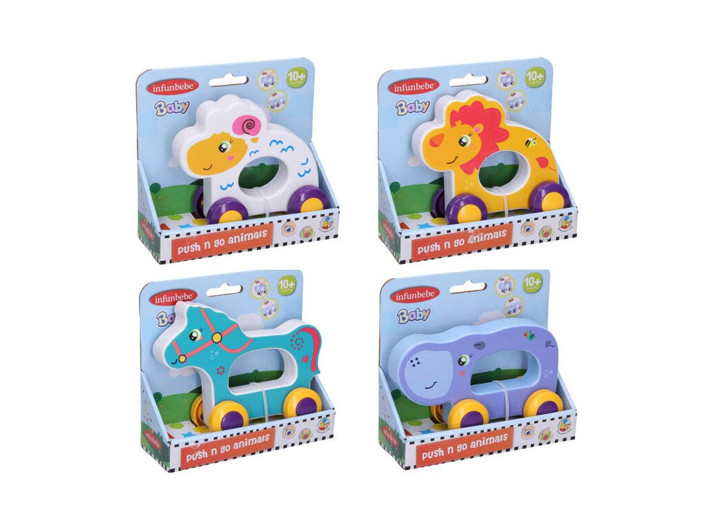 Zvieratko na kolieskach 15cmKrásne farebné zvieratko na kolieskach bude novým priateľom vášho drobčeka. Zvieratko je vyrobené z plastu a pomaľované pestrými odolnými farbami. Tak kam sa vyberiete dnes na výlet? veľké otvory v telíčku zvieratka umožnia ľahké uchopenie malou detskou rúčkoukolieska sú navrhnuté pre hladkú jazdu a sú pripravené na preteky veľkou rýchlosťouvynikajúca hračka na rozvoj motorických zručnostípekné ako aj dekorácia do izbičkyRozmery: 15 x 13 cmMateriál: plastOdporúčaný vek: od 10 mesiacov4 druhy: lev, ovečka, hroch, kôň