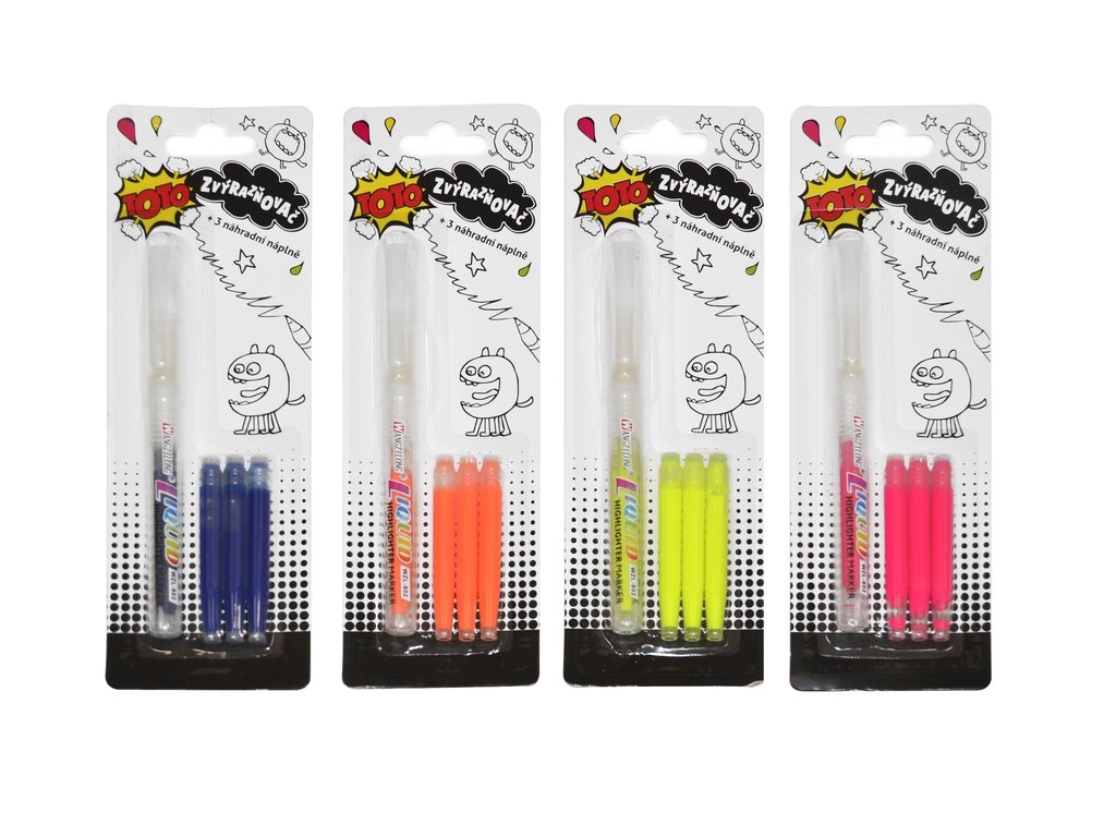 Zvýrazňovač a 3 náplňeZvýrazňovač je praktickou pomôckou ako do kancelárie tak aj do školy. určené na zvýrazňovanie textov na všetkých druhoch papiera zatvárací vršok klinový hrotZvýrazňovače vám umožnia označiť si tie najdôležitejšie časti svojich dokumentov a výrazne tak zvýšiť ich prehľadnosť. Podľa psychológov schopnosť zapamätať si text pri použití zvýrazňovačov vzrastie až o 50%.